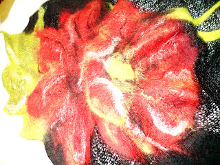Esarfa realizata pe baza din material tip plasa, pe care am impaslit